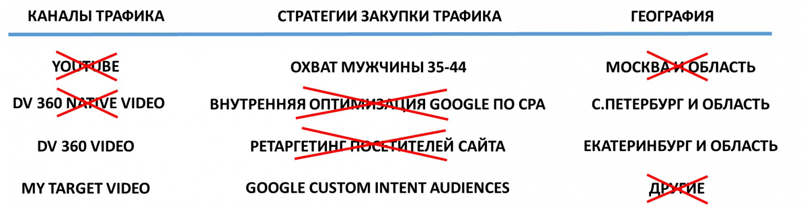 Таргетологи в тесном сотрудничестве с клиентом постоянно отслеживают результаты и тестируют разные стратегии закупки трафика, чтобы добиться максимального эффекта. В ходе такой оптимизации выяснилось, например, что трафик с Youtube-видео при наивысшем показателе CTR имеет самый низкий показатель post-view конверсии. Пришлось также отказаться от ретаргетинга посетителей сайта, поскольку 90% конверсий происходило в ходе первого посещения. Все эти наблюдения стали возможны благодаря активной поддержке внутренними данными и статистикой сайта со стороны сотрудников «Ренессанс страхование». Это отличный пример командной работы рекламодателя и рекламного агентства.