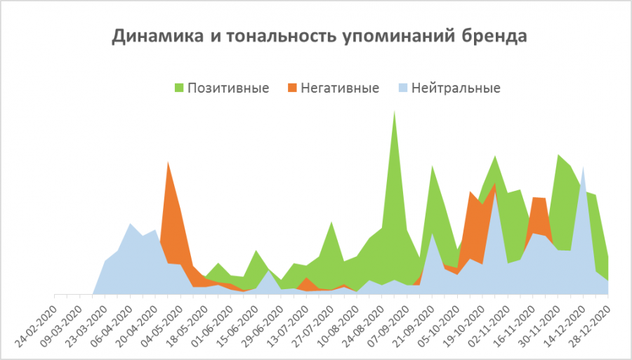 На графике ниже видно, что всплески негатива были уже не такими сильными, как весной, и почти всегда сопровождались перекрывавшим их позитивным обсуждением.