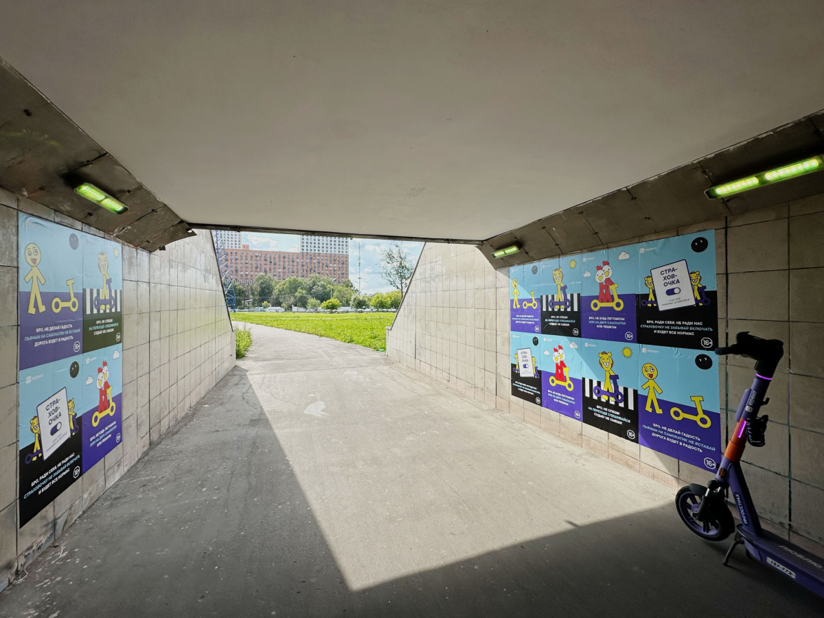 В рамках кампании на улицах Москвы появились ситиформаты и постеры с обращением к нарушителям. Плакаты посвящены четырём главным «грехам» самокатчиков: