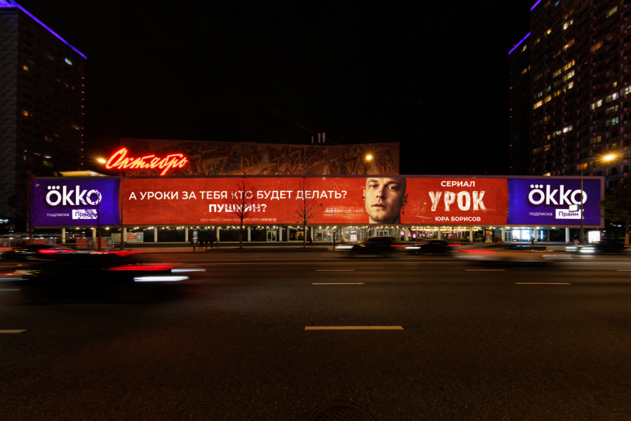 Команда онлайн-кинотеатра Okko провела открытый урок в Лицее Высшей Школы Экономики и задала учащимся домашнее задание ― придумать идеи для рекламы нового драматического сериала «Урок» с Юрой Борисовым в главной роли. Результат превзошел все ожидания, и школьники прислали сразу несколько оригинальных креативов для диджитала и офлайна, один из которых стал частью рекламной кампании сериала и появился на гигантском медиафасаде кинотеатра «Октябрь».