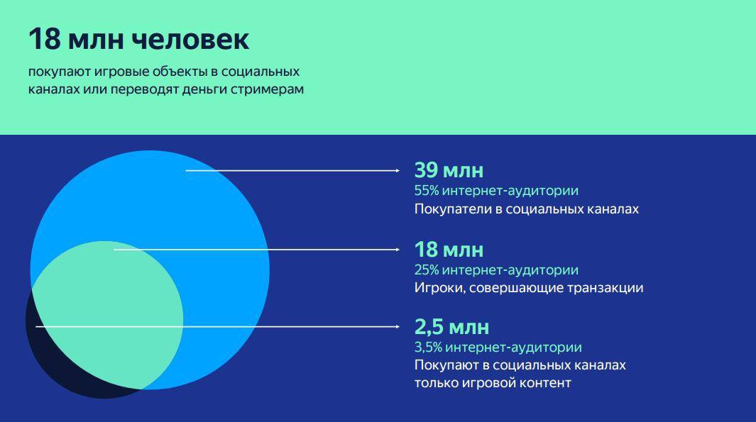 «Яндекс.Кассы» и Data Insight проанализировали платежную активность аудиторий ведущих платформ для игр и стриминга (потокового онлайн-вещания) Steam, Battle.net, Twitch, YouTube, DonationAlerts и оценили объем транзакций между геймерами при покупке и продаже игровых объектов и персонажей, а также при переводах денег игрокам-стримерам. Исследование проводилось впервые, поэтому сравнительных данных нет. В опросе приняли участие около 3 тыс. интернет-пользователей в возрасте от 14 до 54 лет, максимальная ошибка выборки — 2,4%.