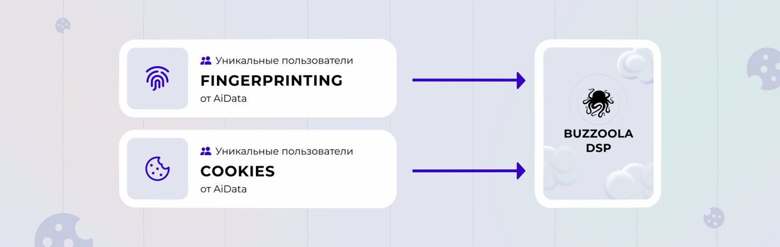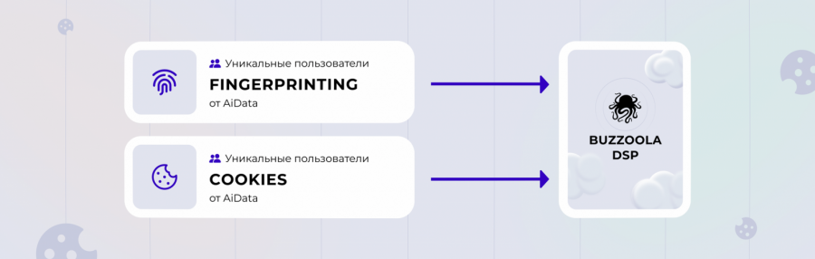 Сегмент, выстроенный на идентификаторах Fingerprinting от AiData, тестировали в сравнении с этим же сегментом, но на third-party cookies. Для этого одновременно запустили две рекламные кампании и экспортировали оба сегмента из AiData DMP в Buzzoola DSP. Каждый сегмент включал уникальную аудиторию: из сегментов на cookies были исключены все пользователи с Fingerprinting, что обеспечило отсутствие пересечений в показах.