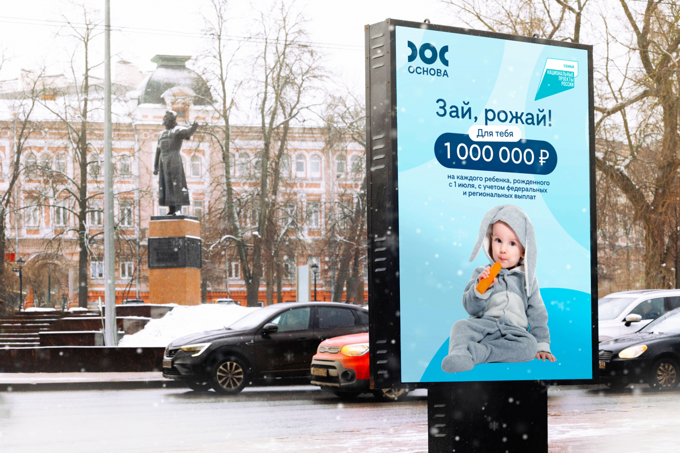 На основе этого АНО «Институт демографического развития Нижегородской области» оперативно запустил информационную кампанию о новых выплатах за рождение детей. В нее вошла установка анимированных баннеров на улицах с малышами-зайчиками и тем самым лаконичным слоганом.