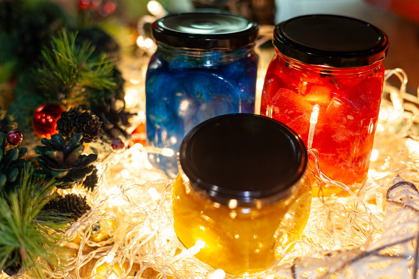 Все банки были приготовлены и украшены руками команды агентства. Салат из маринованной свёклы с кунжутом и розовым шиммером «Слёзы Лабубу» для Ozon, «Сладкий абьюз» из сладких арбузов для Яндекс Карт, релиш «Пресс-релиш» с золотым шиммером для особо важной персоны, и другие заготовки сделаны по авторским рецептам. В их создании приняли участие даже мамы и бабушки коллектива.