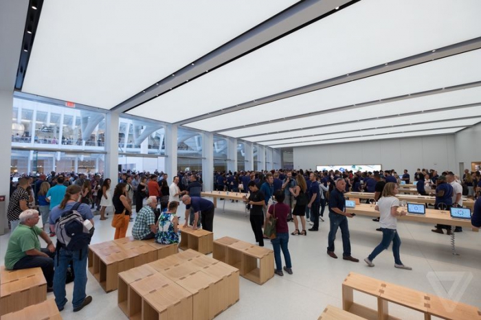 Одновременно Apple меняет подход к розничной сети. Магазин Apple перестанет быть просто местом, где продаются iPad и Mac. Он должен превратиться в место для общения, где к услугам посетителей — зона отдыха, гигантские видеоэкраны с разрешением 6K и много зелени. Например, в флагманском магазине в Сан-Франциско секция Genius Bar, где сотрудники консультируют и оказывают техническую поддержку, превратилась в Genius Grove — пространство, где потребители могут посидеть в тени деревьев, пообщаться со специалистами и приятно провести время. Plaza будет служить для проведения выступлений и других публичных мероприятий.