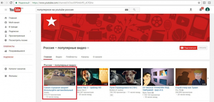 - ролик выведен в ТОП YouTube и продержался там 4 дня