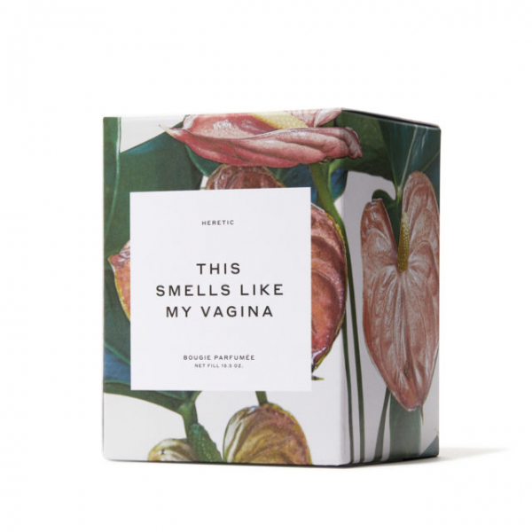 «Это пахнет, как моя вагина» — название прямое и точное. Легенда гласит, что это все-таки не истинный запах актрисы, а ее первая ассоциация к сочетанию бергамота, герани, дамасской розы и семян амбретты, которые и содержатся в аромате свечи.