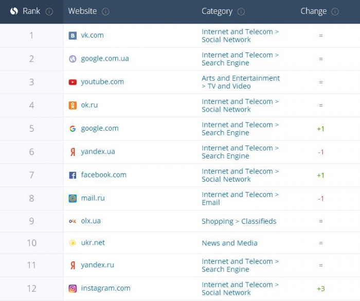 Несмотря на вступление в силу указа о запрете российских интернет-ресурсов, "ВКонтакте" продолжает занимать первое место в рейтинге топ-сайтов Украины. Другие российские сайты, в частности "Одноклассники", "Яндекс" и Mail.Ru, также сохранили свои лидирующие позиции.