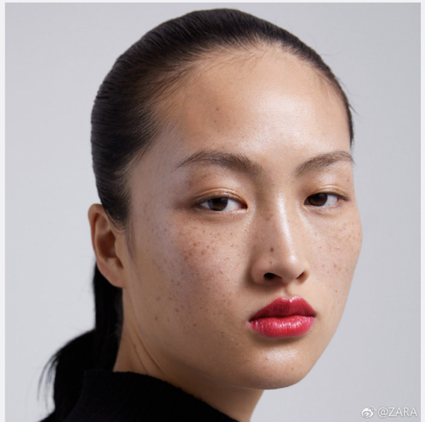 Китайская модель Ли Цзинвэнь была выбрана для рекламы помад из косметической линейки бренда ZARA. На принтах, опубликованных в рамках рекламной кампании, девушка изображена с минимумом макияжа (акцент был сделан только на губах), что повлекло за собой сохранение на снимках веснушек модели.