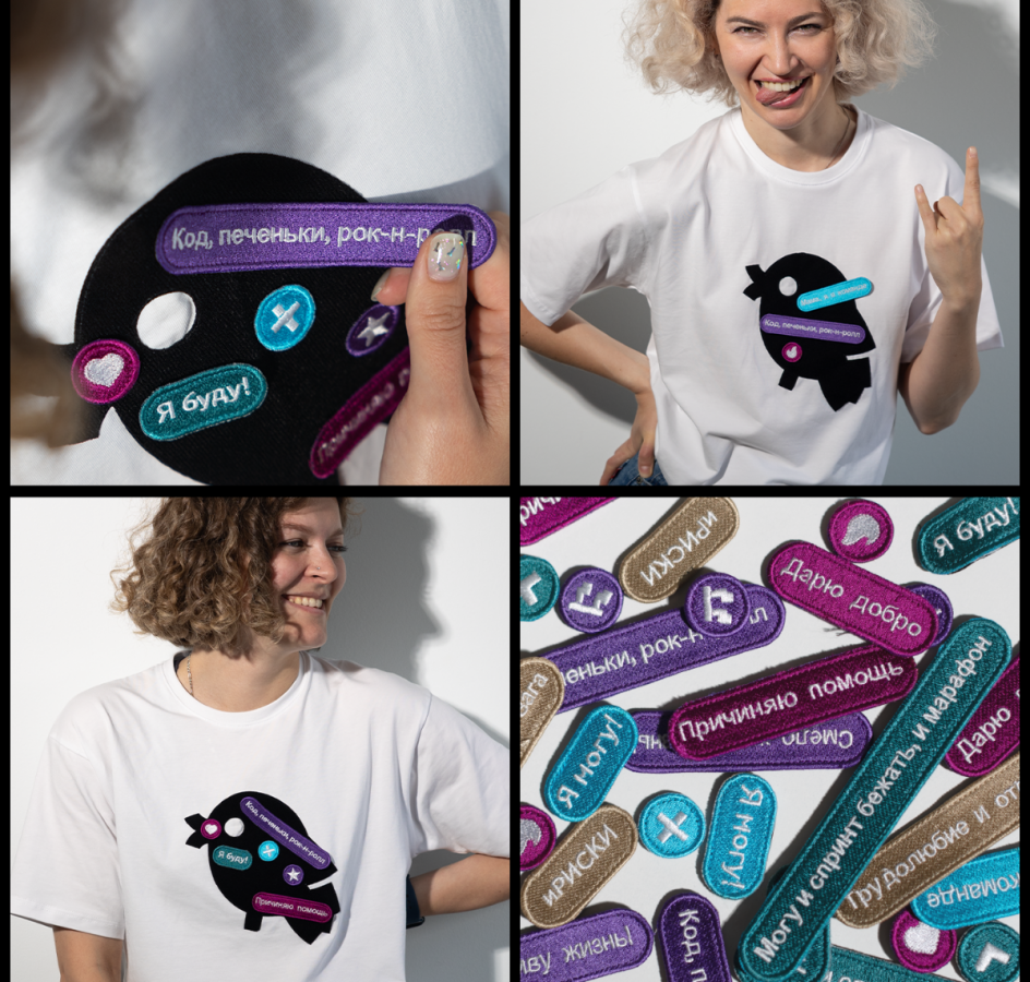 Второй дроп уже вышел, и мы его дополнили значками и нашивками, с помощью которых можно кастомизировать базовый мерч. Например, у нас есть худи с большим ярким принтом, который не нуждается в дополнении. А есть базовые чёрные футболки с маленьким логотипом. Нашивки и значки позволят создавать свой уникальный рисунок на таких носителях, персонализировать их.