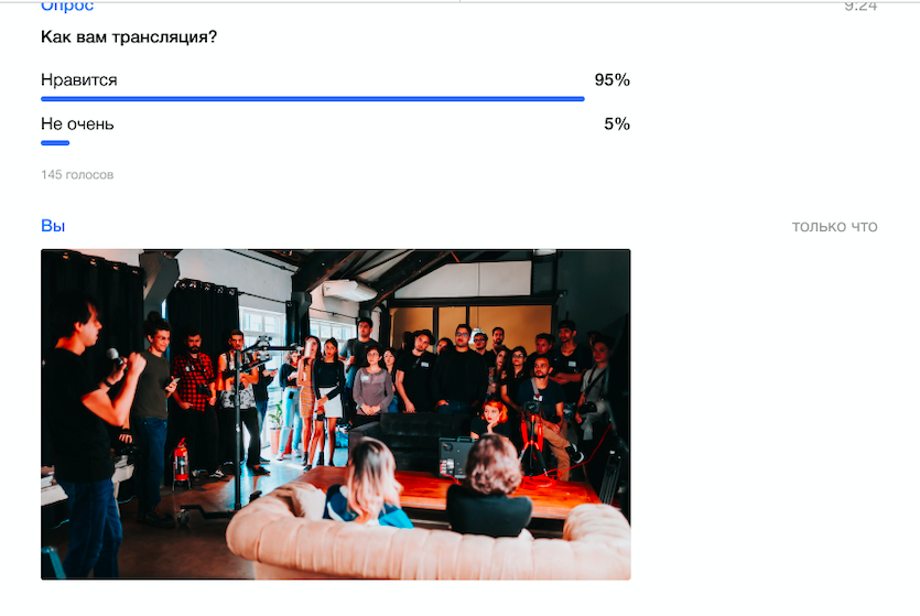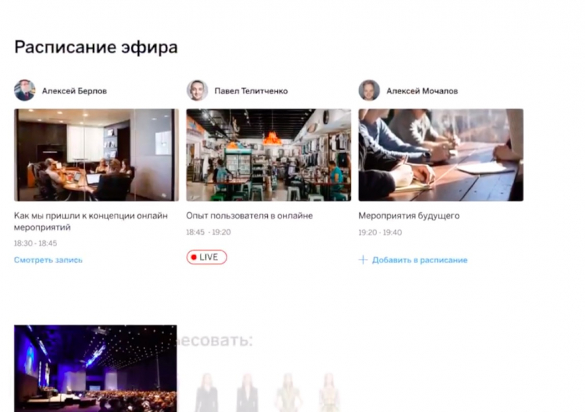 Сервис ориентирован на организаторов информационных мероприятий — от форумов до презентаций новых продуктов. Он позволяет транслировать полноценное выступление спикеров и предоставляет ряд механик для вовлечения аудитории: текстовую трансляцию, голосования, опросы, а также дает возможность работать с контентом и делиться им в социальных сетях.