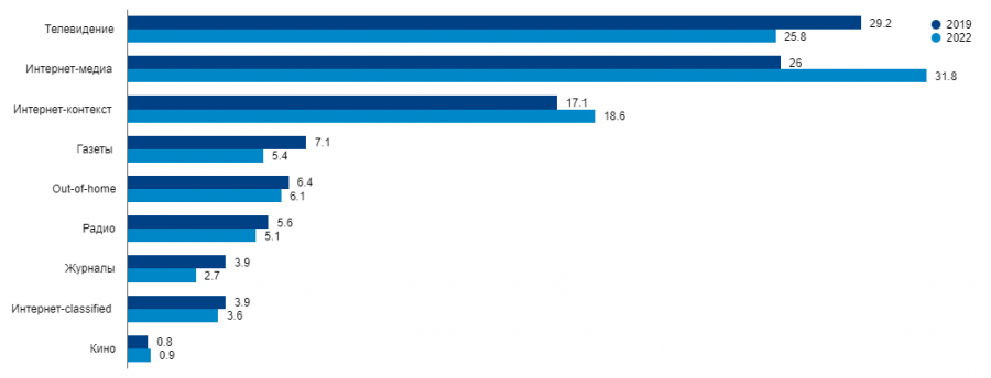 Глобальный рынок устроен иначе: объемы ТВ-рекламы будут уменьшаться, причем, можно ожидать, что скоро она уступит лидерство медийной интернет-рекламе (internet display).