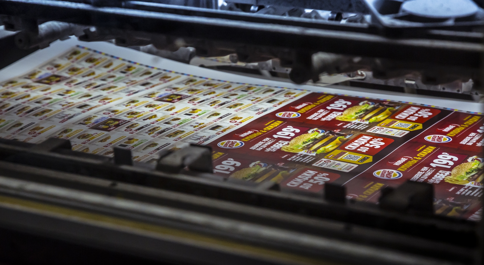 Первое, на что стоит обратить внимание — это технология печати и материалы. Тут есть свои тонкости, которые помогут значительно сэкономить. Возьмем в качестве примера наклейки. Если вы делаете вклейки в журналы, то вам не так важно, на чем они напечатаны. Таким образом, можно перейти с дорогой ПВХ-пленки на офсетную самоклейку и сэкономить на этом в несколько раз, в зависимости от тиража.
