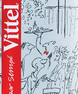 На создание этой упаковки карикатуриста вдохновили террасы французских кафе. «Уютный щебет посетителей, озорной звон фарфора, я создал маленькую смешную историю, которую поместил на бутылку VITTEL.», - прокомментировал свое творение Жан-Жак Семпе.