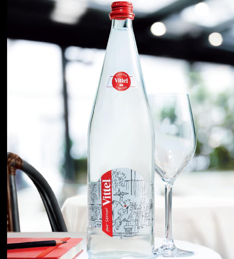 Лимитированная коллекция VITTEL Sempé представлена 3-мя форматами стеклянных бутылок: 1 л, 50 мл и 25 мл.