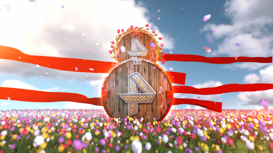 В эфирном оформлении «богатырская» тематика также предстала в обновленном виде — были созданы уникальные логотипы в форме деревянных щитов с красными лентами на фоне тюльпановых полей.