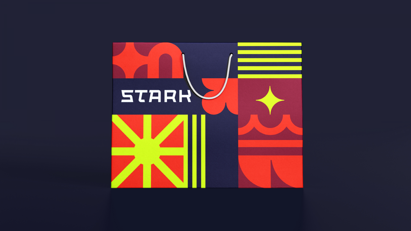 Логотип Stark — смысловое продолжение проекта. Выполненный латинскими буквами, он сочетает в себе начертание, свойственное традиционным кириллическим и азиатским шрифтам. Буква S спроектирована таким образом, чтобы органично вписываться в разработанную символьную модель. Логотип отражает новаторство, уникальность и яркость проекта. Такое решение позволяет гармонично вписывать фирменный стиль в любые креативные рамки.