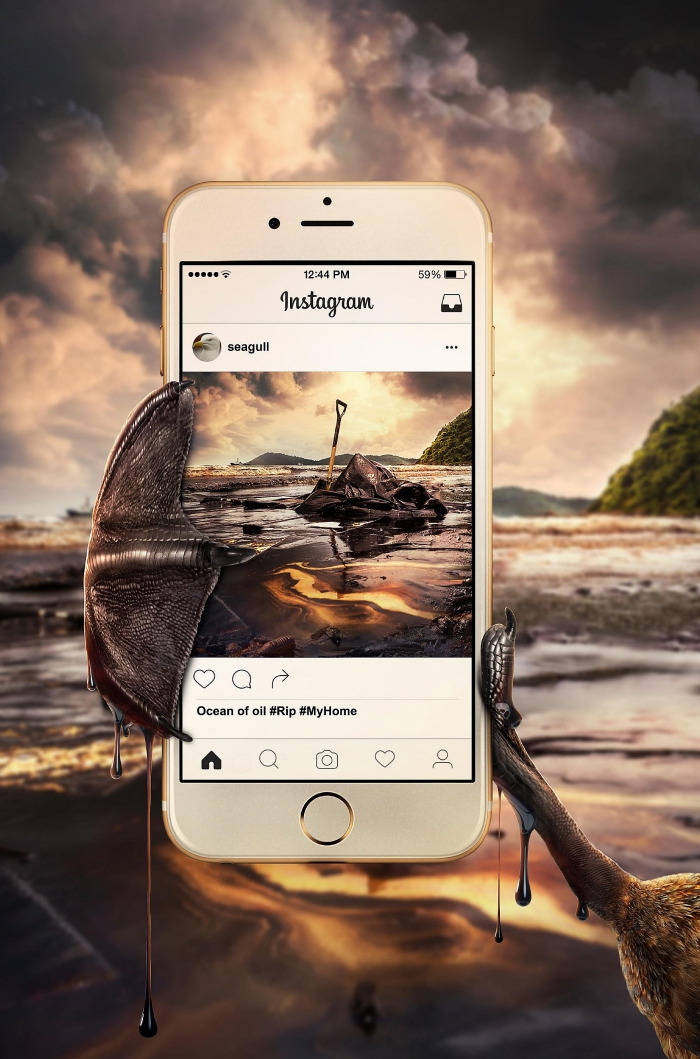 В новой рекламной кампании JWT, India для Sanctuary Nature Foundation орёл, чайка и шимпанзе держат в лапах мобильные телефоны, на экранах которых уничтоженные леса и водоёмы. Животные сообщают, что у них больше нет дома, и просят поделиться этой новостью со всем миром.