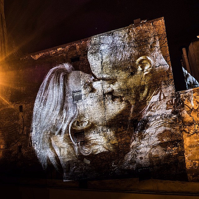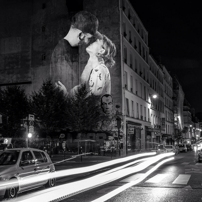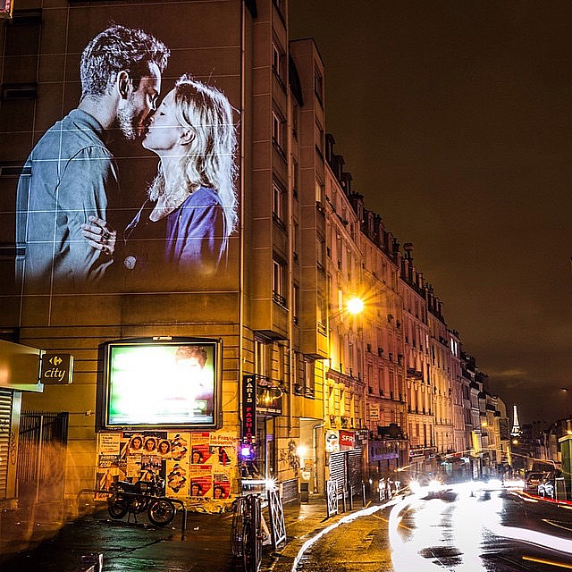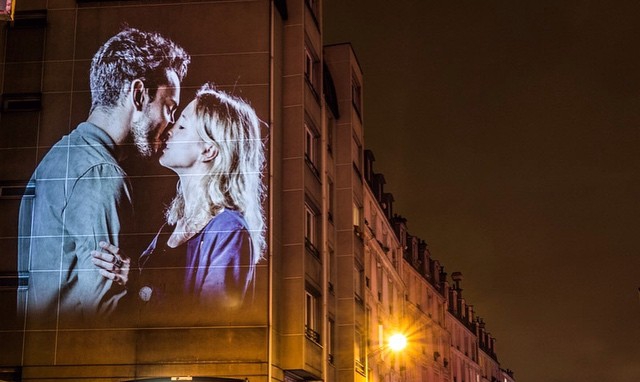 Десятки целующихся пар украсили фасады зданий, напоминая, что Париж навсегда останется «городом любви». Художник поместил не просто фотографии, он спроектировал на стены зданий видео – так проект действительно цепляет внимание прохожих и производит сильное впечатление.