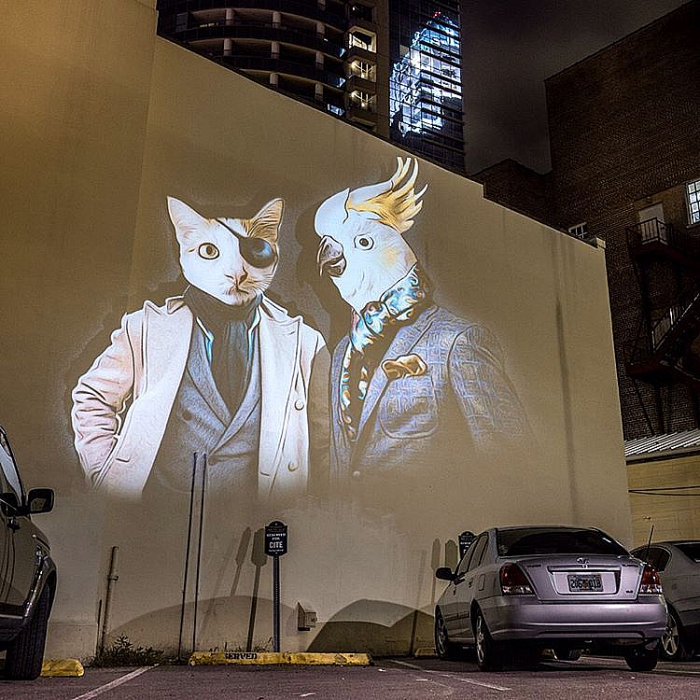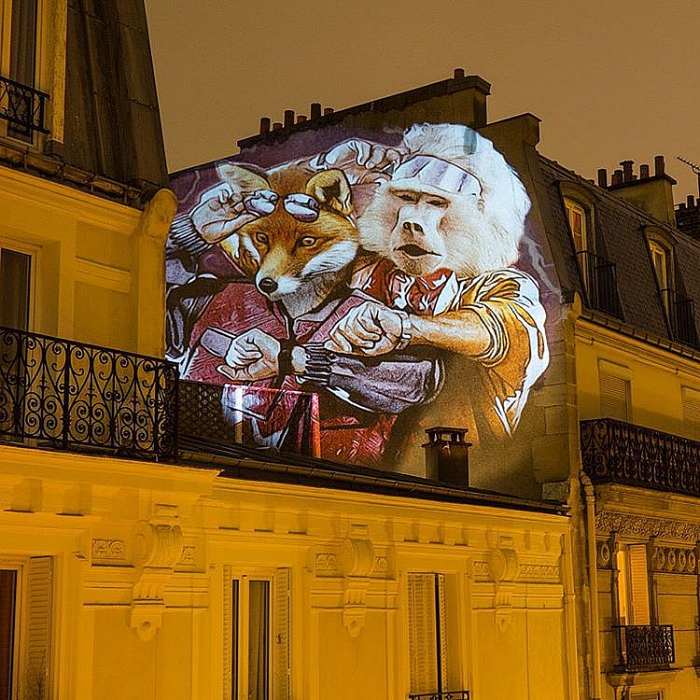Жулиен Ноннон известен своими впечатляющими digital-проектами. Не так давно он украсил стены зданий огромными проекциями животных, одетых в модные костюмы. «Городское сафари» осветило ночной Париж прошлой осенью.