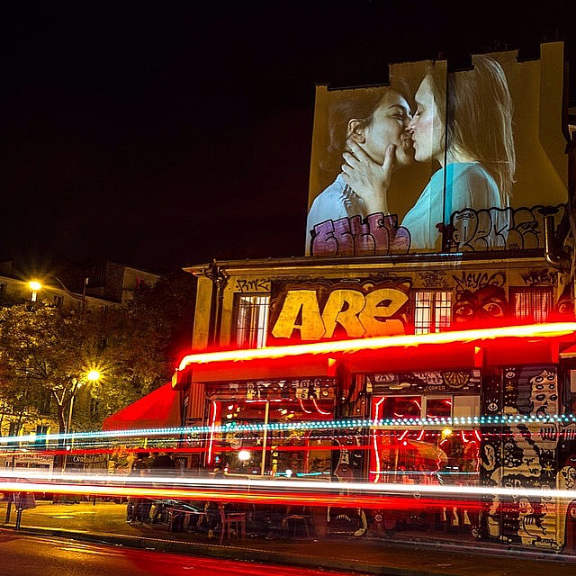 Ожившие поцелуи транслировались на стенах города в «белую ночь 2016» - парижская ночь искусств 16 октября. Но проект на этом не заканчивается: Ноннон планирует запустить романтичную акцию по всему миру.
