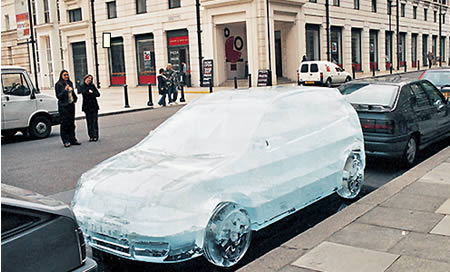 Нечто подобное проводил в Лондоне автобренд Volkswagen в 2004 году. В рамках продвижения модели Volkswagen Polo Twist команда DDB London пригласила cкульптора, который выточил полноразмерный автомобиль из девятитонного блока льда. Работа мастера заняла более 350 часов. А сама скульптура, припаркованная в центре города, растаяла за 12 часов. Несмотря на свою недолговечность, конструкция наделала немало шума в прессе и порадовала лондонцев.