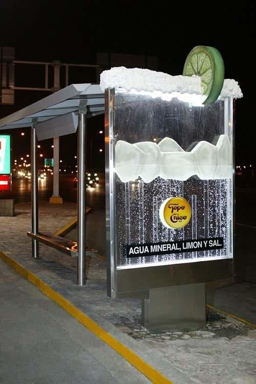 Довольно часто лед и снег можно увидеть в рекламных конструкциях на остановках общественного транспорта. В прошлом году мексиканский бренд минеральной воды Topo Chico украсил часть остановки шапкой льда и лаймом, чтобы наглядно показать свежесть собственной продукции.