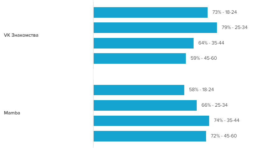«VK Знакомства» популярны у всех возрастов, Mamba больше использует аудитория старше 35 лет.