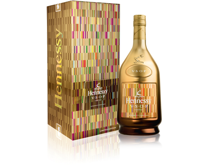 Бутылка для известного коньяка выполнена в золотистом матовом цвете, который гармонирует с коричневыми оттенками. Этикетка украшена «химическими» цветами, например, неоновым розовым, электрическим синим, ярким апельсиновым. По словам автора проекта, яркие вкрапления призваны оттенить приглушенный фон. Рельефный белый логотип и металлический отблеск, округлая форма бутылки также призваны сделать дизайн привлекательным и донести до покупателя следующую мысль: этот коньяк можно пить как угодно, в чистом виде или в миксе из разных напитков.