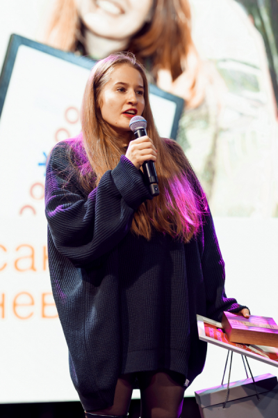 Одной из первых свой специальный приз получила Александра Логиневская. Ее история интересна: девушка впервые поучаствовала в «Среде», будучи студенткой, ещё в 2017 году. Прошло пять лет, и теперь она не только выходит на сцену в качестве дизайн-директора «Азбуки Вкуса», но и получает личные награды за верность фестивалю.