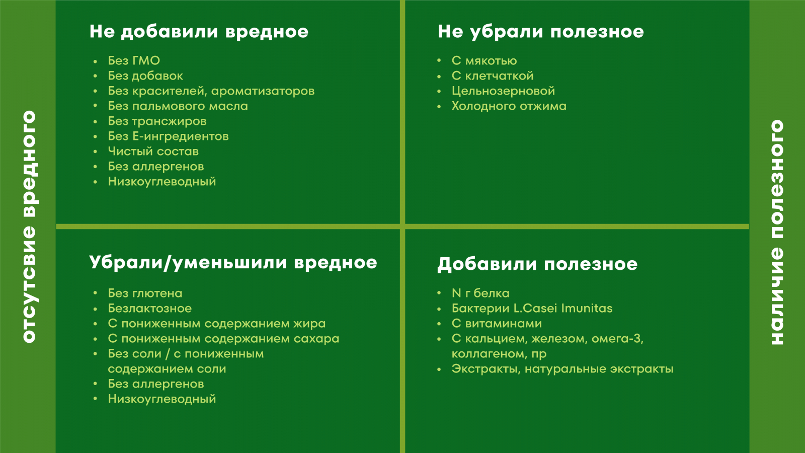 Изучив обозначения о пользе продукта питания на упаковке и в рекламе, предлагаем модель:
