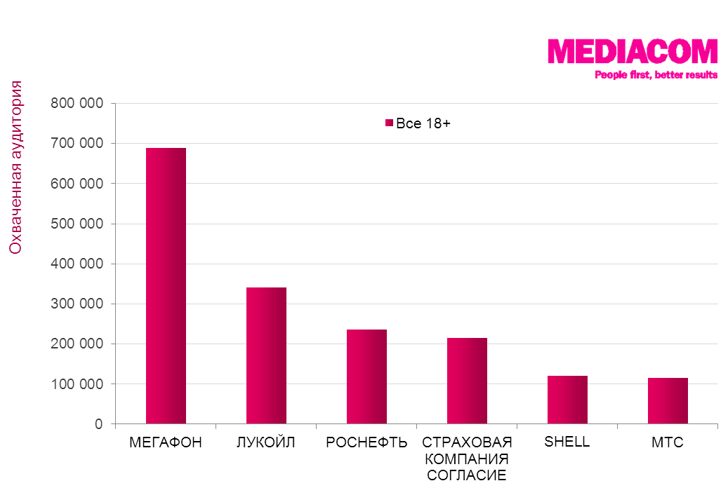 По данным XXI Зимних Олимпийских игр в Ванкувере по объемам спонсорских трансляций, охвату интеграциями* в спонсорских трансляциях максимален у МегаФона. Далее со значительным отрывом следуют другие рекламодатели.