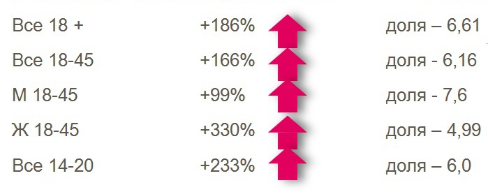 - НТВ – все перечисленные аудитории ( кроме все 18+)