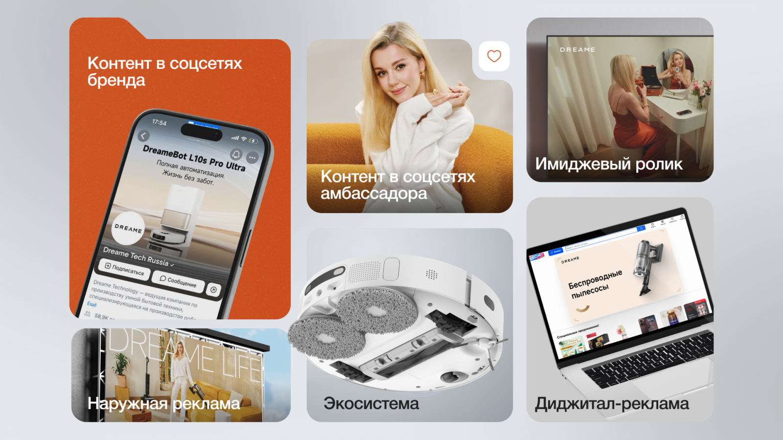 Идеальный амбассадор найден, пришло время воплотить в жизнь идею Dreame Life. Чтобы максимально эффективно донести до аудитории ключевое сообщение «Dreame. Воплощайте в жизнь в свою мечту», мы использовали каналы коммуникации, затрагивающие все точки касания с аудиторией. Экосистема кампании включила в себя диджитал-активности, наружную рекламу, публикации в прессе, а также интеграции в сети ритейлеров «МВидео», «Ситилинк», «Всесмарт» и на их сайтах по территории России и СНГ. Такой многоуровневый подход позволил бренду присутствовать на всех значимых платформах, создал единое поле взаимодействия с целевой аудиторией и усилил узнаваемость на разных уровнях.