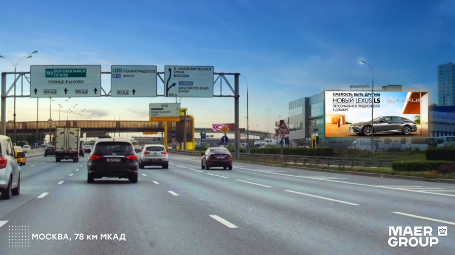 Новый медиафасад от компании MAER GROUP введен в эксплуатацию в Москве на 78 км МКАД (в районе Химок по направлению в аэропорт Шереметьево).