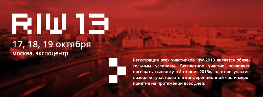 RIW–2013 объединяет в себе сразу несколько направлений и форматов, интересных как профильным интернет-специалистам, так и широким группам конечных интернет-пользователей.