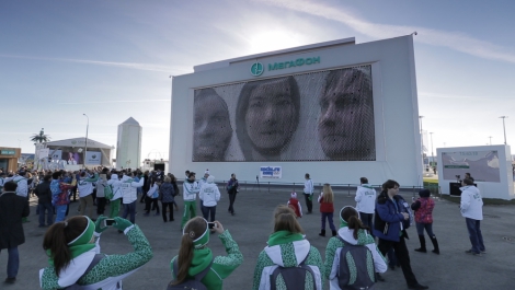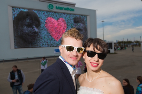 В День святого Валентина в павильоне «МегаФона» отметили свадьбу. Влюбленная пара из Краснодара Юрий и Елена расписались в октябре прошлого года, но так и не успели отметить это важное событие. Молодой муж Юрий, узнав из СМИ об инновационном павильоне «МегаФона», решил сделать подарок своей возлюбленной и отпраздновать свадьбу на главном событии года – зимней Олимпиаде в Сочи. Он связался с представителями «МегаФона» и попросил показать на фасаде MegaFaces их семейный портрет. Сотрудникам «МегаФона» так понравилась эта идея, что они решили самостоятельно организовать для Юрия и Анны долгожданный праздник на День всех влюбленных.