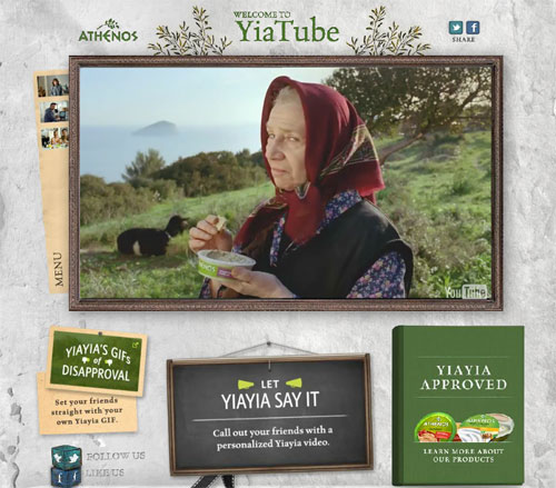 Также интересен пример греческого бренда Athenos. На его канале, кажется, есть все: видеоролики, книга рецептов, интерактивная игра Let Yiayia Say It. Усилия создателей не прошли даром: сейчас канал может похвастаться 2,5 миллионами просмотров и 1,500 видео сгенерированными пользователями. Также больше 30% пользователей просмотрели ролики после того, как реклама перестала транслироваться на ТВ. Таким образом YouTube стал площадкой, дающей возможность рекламным кампаниям существовать и после окончания показа/размещения в традиционных СМИ.