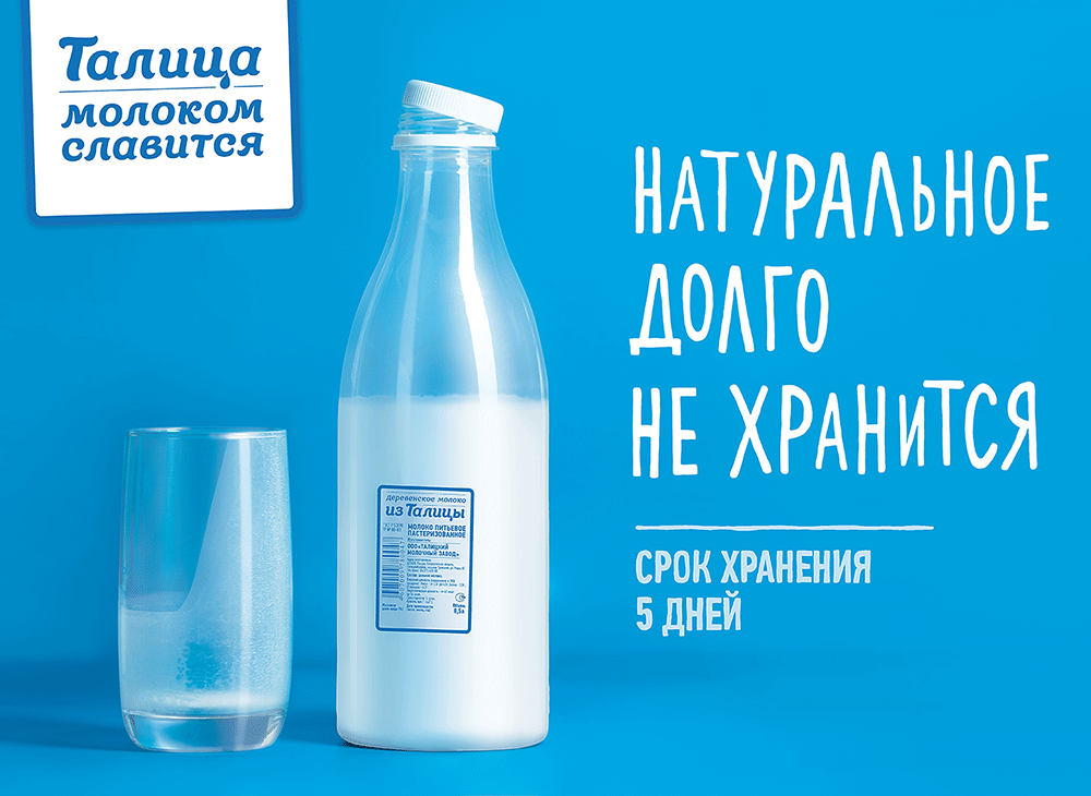 Агентство Red Pepper в 2014 году разработало рекламную кампанию для бренда «Талицкое молоко», в которой наглядно продемонстрировало, что настоящее молоко недолговечно по естественным причинам.