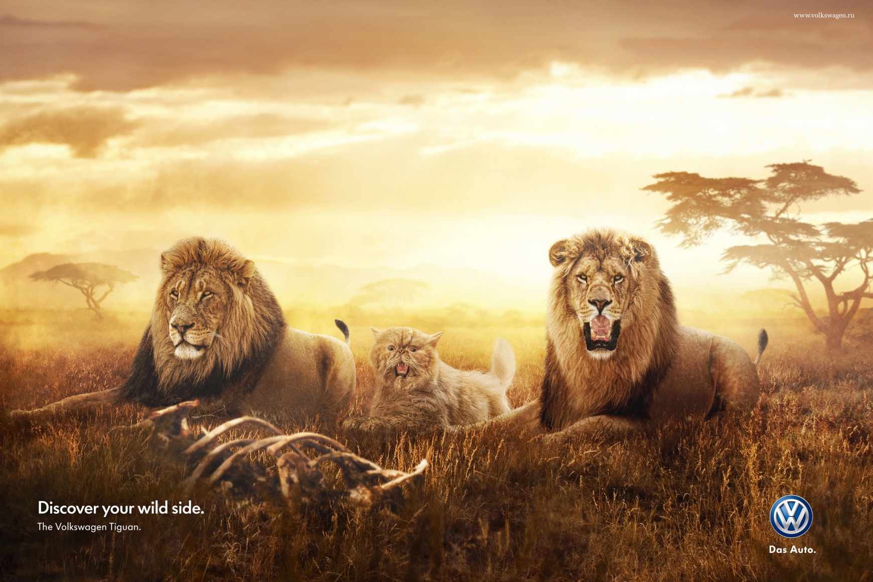 Агентство DDB Russia в 2014 году разработало серию принтов для немецкого автоконцерна Volkswagen, которая буквально призывает исследовать свою дикую сторону натуры.