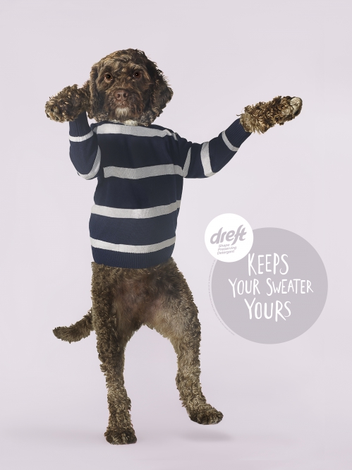 Агентство Leo Burnett Moscow разработало серию рекламных принтов для бренда средств для стирки Dreft (P&G). В своей работе креаторы наглядно продемонстрировали, как Dreft поможет сохранить вашу одежду только вашей: если она сядет после стирки, она будет в пору только вашему питомцу.