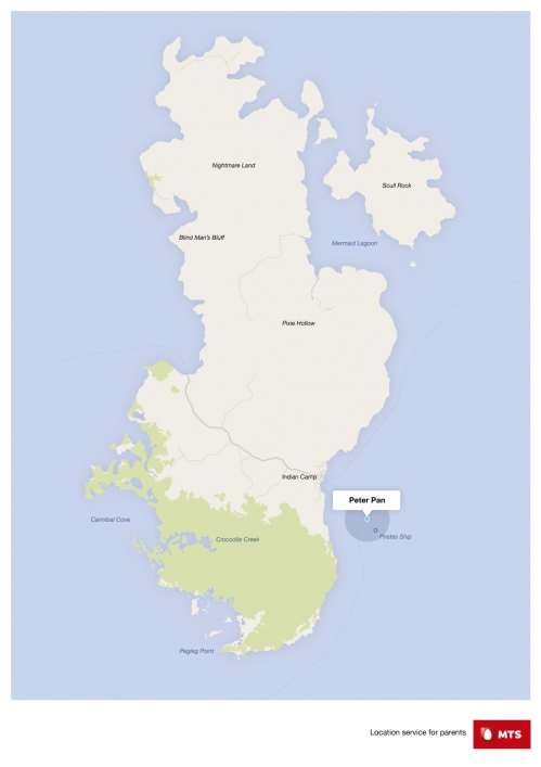 Агентство BBDO Moscow разработало серию принтов для телеком-оператора МТС, в котором отобразило возможности родительского геолокационного надзора за детьми. Креаторы использовали для этого персонажей известных детских книг, а также локации из этих произведений.