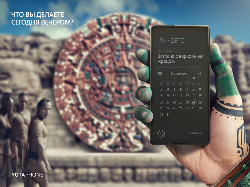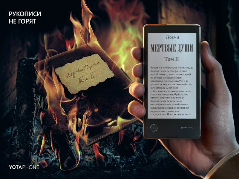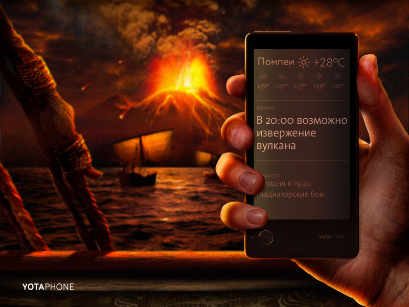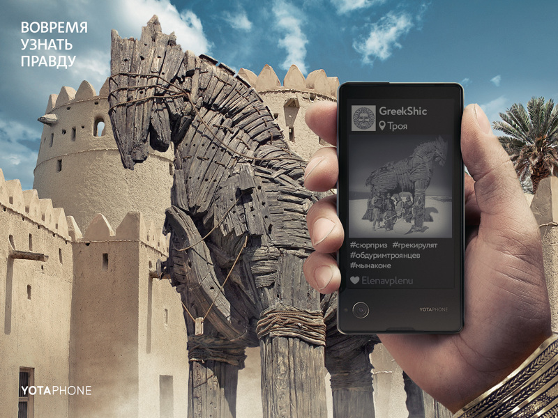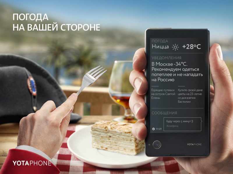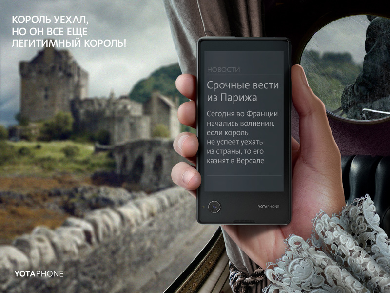 Агентство Hungry Boys разработало серию рекламных принтов для продвижения смартфона YotaPhone2. Креаторы поставили перед собой задачу «наглядно доказать, что YotaPhone - по-настоящему инновационное изобретение, которое когда-нибудь станет частью истории».