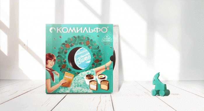 Агентство Depot WPF в 2014 году разработало креативную концепцию и дизайн упаковки для новогодней серии конфет «Комильфо». Креаторы превратила коробку конфет в обложку музыкальной пластинки - идеального рождественского подарка 1950-1960-х годов.
