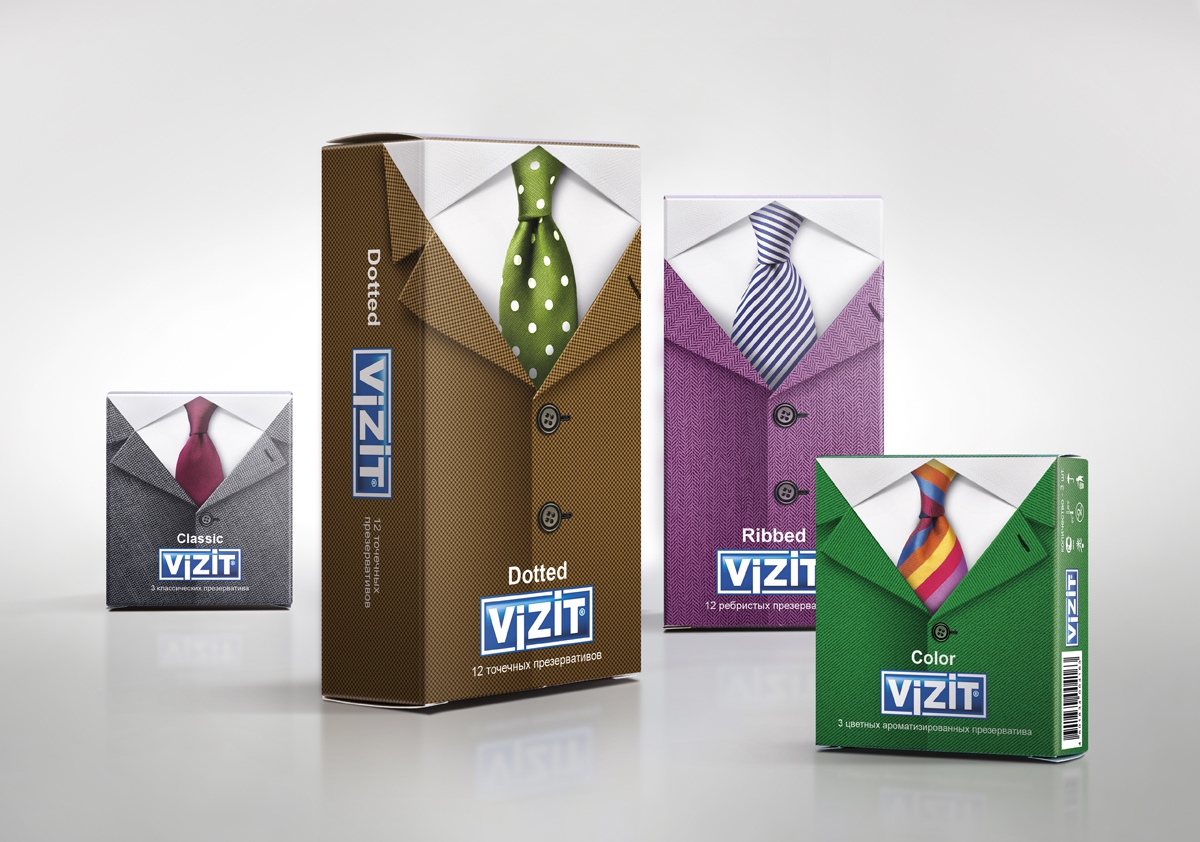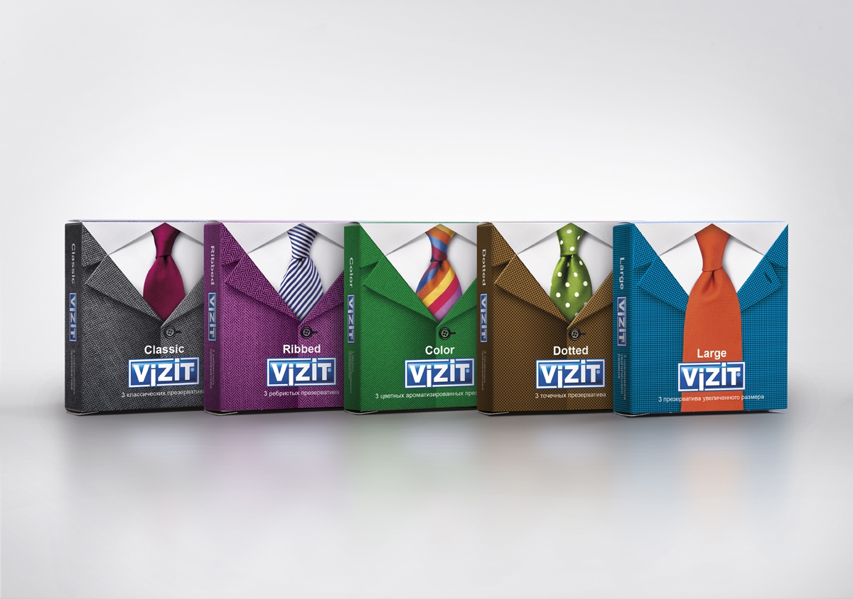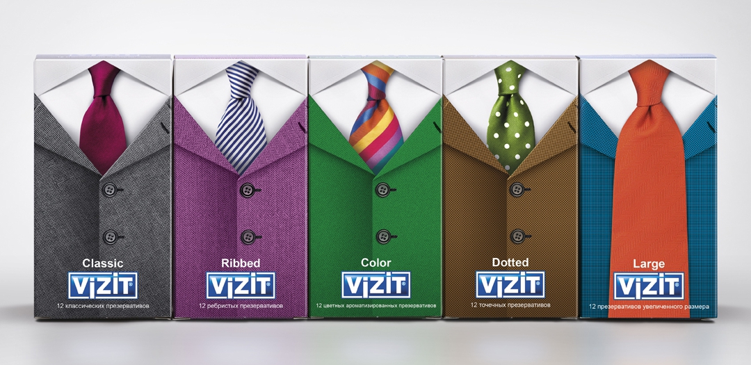 Агентство Vozduh в 2014 году разработало дизайн упаковки презервативов торговой марки VIZIT. Особенности каждого продукта креаторы проиллюстрировали характерным рисунком на галстуке.
