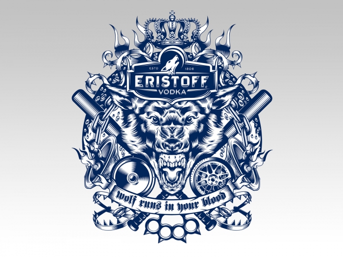 В рамках рекламной кампании «Волк в твоей крови» агентство Firma разработало дизайн лимитированной бутылки водки Eristoff в татуировочной стилистике. Брутальный характер бренда нашел отражение в новой лимитированной упаковке Eristoff Tattoo.