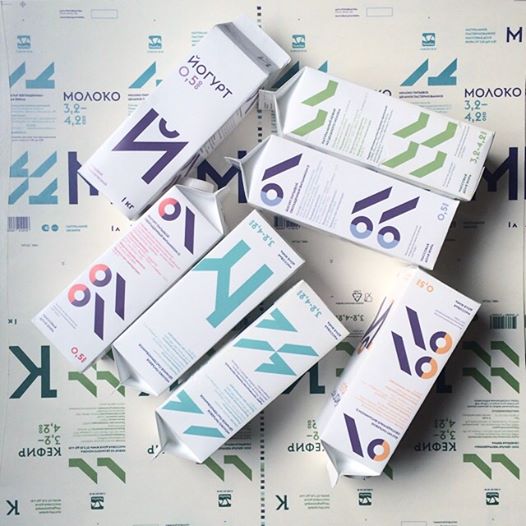 В качестве основного графического элемента креаторы использовали заглавные буквы названия продукта: М - молоко, К - кефир или Й - йогурт.