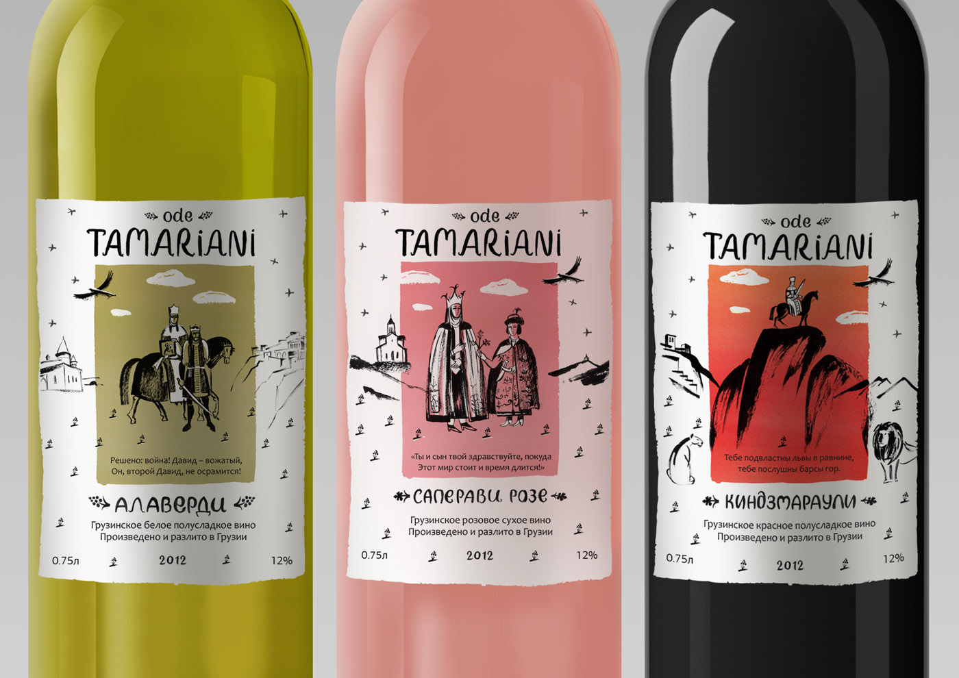 Самой знаменитой и почитаемой фигурой в Грузии была и остается царица Тамара. С ее именем связан «Золотой век» грузинской истории, ей посвящали поэмы. Самая известная ода носит название «Тамариани». Именно ее авторы проекта взяли за основу в разработке новой марки грузинского вина, изобразив на каждой этикетке картины жизни и славных деяний царицы Тамары.