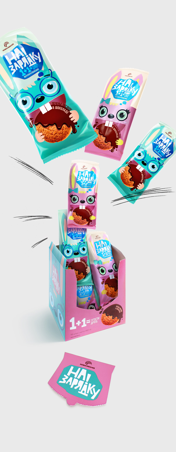 Креаторами были разработаны забавные персонажи - зайцы, употребляющие продукт, а также оригинальная графема. Особое внимание уделялось работе с текстами на упаковке с целью сделать её максимально информативной и побуждающей к покупке. Образы зайцев также были использованы в оформлении большой фасовочной упаковки для печенья.
