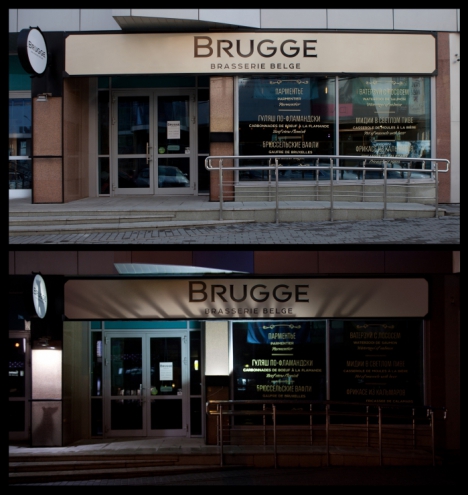 Агентство StreetArt в 2014 году разработало философскую айдентику для екатеринбургского паба «Брюгге», основным элементом которой стала тень собаки.
